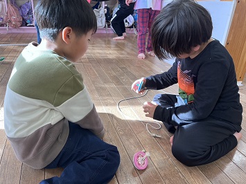 自然と4歳児の友達を遊びに誘ったり、遊び方を優しく丁寧に教えてあげる姿が見られました☆