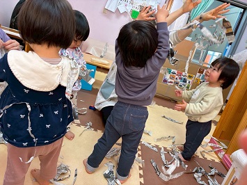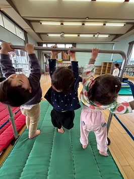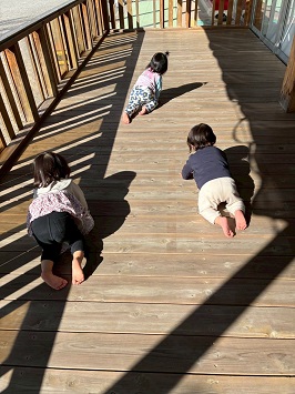 2026年03月17日(火) 3月の様子☆0歳児☆ ①チューリップ観察中🌷もうすぐ花が咲くかな!? ②ボールハウスで遊びました。上からボールが落ちてくるのを楽しみに待っています。 ③ベンチの一本橋で休憩中 ④遊戯室で遊んだよ!鉄棒にぶら下がれるか挑戦中! ⑤ウッドデッキに出るとみんなでハイハイしていました。日差しがぽかぽかで気持ちいいね。 ⑥新聞遊びをしました。保育教諭が上から新聞紙を降らせると、「キャー!」と嬉しそうな声が聞こえました。 もどる