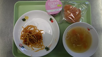 01月09日(金) ごはん けんちん汁 ひじきと大豆の炒め煮 おさかなソーセージ コアコア 01月08日(木) ロールパン ミートスパゲティ 野菜スープ ももゼリー 01月07日(水) 七草風ごはん 豚汁 田つくり バナナ 01月06日(火) ごはん 納豆 味噌汁 肉じゃが ヤクルト 01月05日(月) カレーライス コールスローサラダ みかん