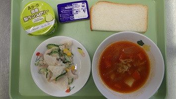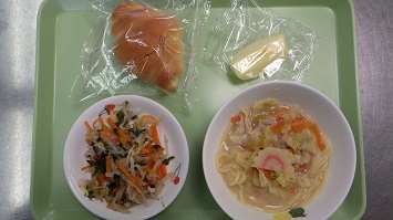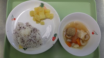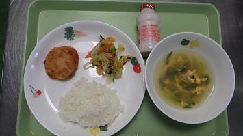 01月16日(金) ゆかりごはん 関東煮 フルーツきんとん 01月15日(木) ロールパン 豆乳入りちゃんぽん風 もやしと人参のナムル りんご 01月14日(水) ごはん かきたま汁 れんこんのはさみ揚げ 白菜の塩昆布和え ラブミープラス 01月13日(火) 食パン(ブルーベリー&マーガリン) ポークビーンズ 大根とツナのサラダ 梨ゼリー 01月09日(金) ごはん けんちん汁 ひじきと大豆の炒め煮 おさかなソーセージ コアコア