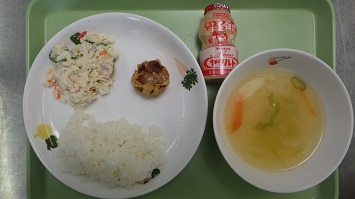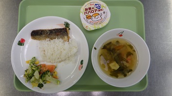 02月06日(金) ごはん 春雨スープ 揚げシュウマイ おからサラダ ヤクルト 02月05日(木) 食パン(ブルーベリー&マーガリン) イタリアンスパゲティ 野菜スープ ぶどうゼリー 02月04日(水) 冬野菜カレーライス キャベツとじゃこの酢和え りんご 02月03日(火) 鰯のかば焼き丼 すまし汁 ブロッコリーのサラダ お米のババロア 02月02日(月) 親子丼 味噌汁 白菜の和え物 ジョア