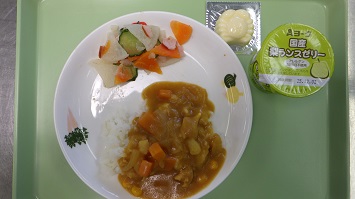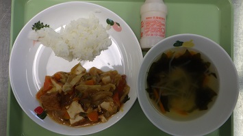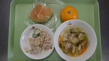11月20日(木) ロールパン イタリアンスパゲティ コンソメスープ やさいゼリー 11月19日(水) ごはん 豚汁 煮魚 バナナ 11月18日(火) 食パン(いちごジャム&マーガリン) かぶのスープ 塩から揚げ コールスローサラダ 柿 11月17日(月) ごはん 春雨スープ 豚肉とキャベツの味噌炒め ラブミープラス 11月14日(金) カレーライス 大根サラダ 型抜きチーズ 梨ゼリー 11月13日(木) ロールパン 五目うどん れんこんサラダ みかん