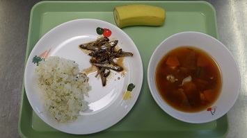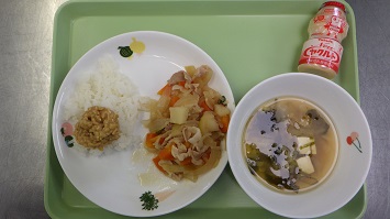 01月07日(水) 七草風ごはん 豚汁 田つくり バナナ 01月06日(火) ごはん 納豆 味噌汁 肉じゃが ヤクルト 01月05日(月) カレーライス コールスローサラダ みかん 12月26日(金) 中華丼 中華スープ みかん 12月25日(木) ロールパン カレーうどん コールスローサラダ やさいゼリー